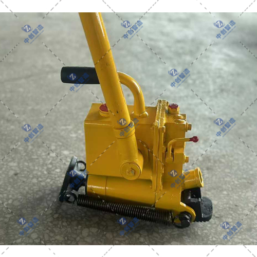 3、按顺时针旋方向旋转卸荷阀手柄使卸荷阀关闭,把操纵杆插入扳杆套内,摇动操纵杆,使高压油通过油泵内腔的排油阀输入工作油缸,活塞伸出,顶动轨枕进行调整至作业要求。