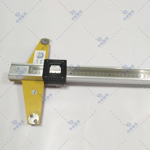 1.本支距尺与现在市场上流行的支距尺相比,虽然尺身材料均为铝合金,但尺身上的刻线并非与尺身为一体,而是由特殊不锈钢制作的标尺单独的镶嵌在尺身上,这样由于标尺的线胀系数与铁路线路水泥枕木的线胀系数非常的接近,因此起到了自动消除使用环境温度的影响。