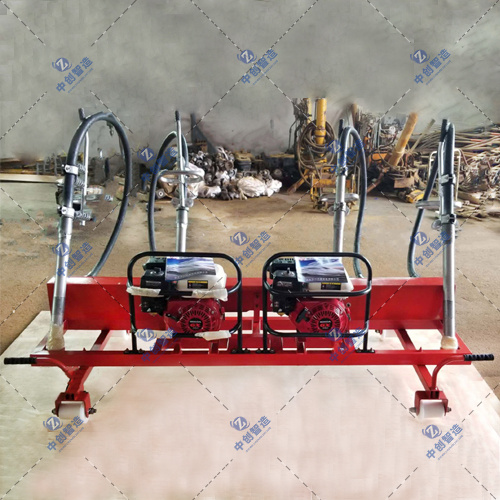 4.将油门加大,检查振动体是否有振动,如不振动,双手拿起振动体将镐头向混凝土轨枕上敲击几次,即可振动。待振动体都振动的情况下,双手握住振动体手扶把开始捣固,(切记:不要对硬质物体进行捣固)。