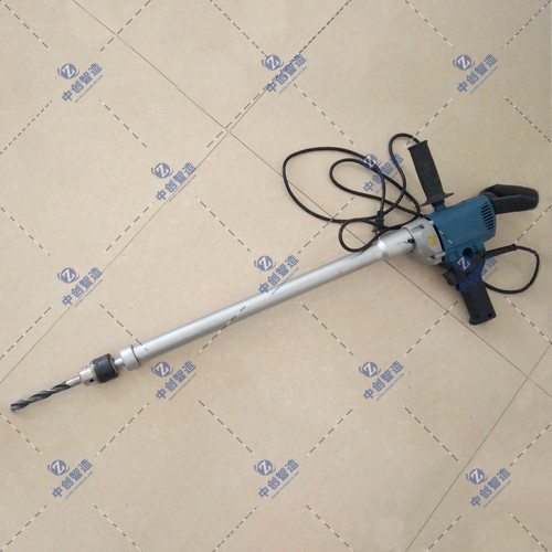 4、双手扶住手扶把,用钻头尖对准钻孔位置,保持钻头的垂直度。